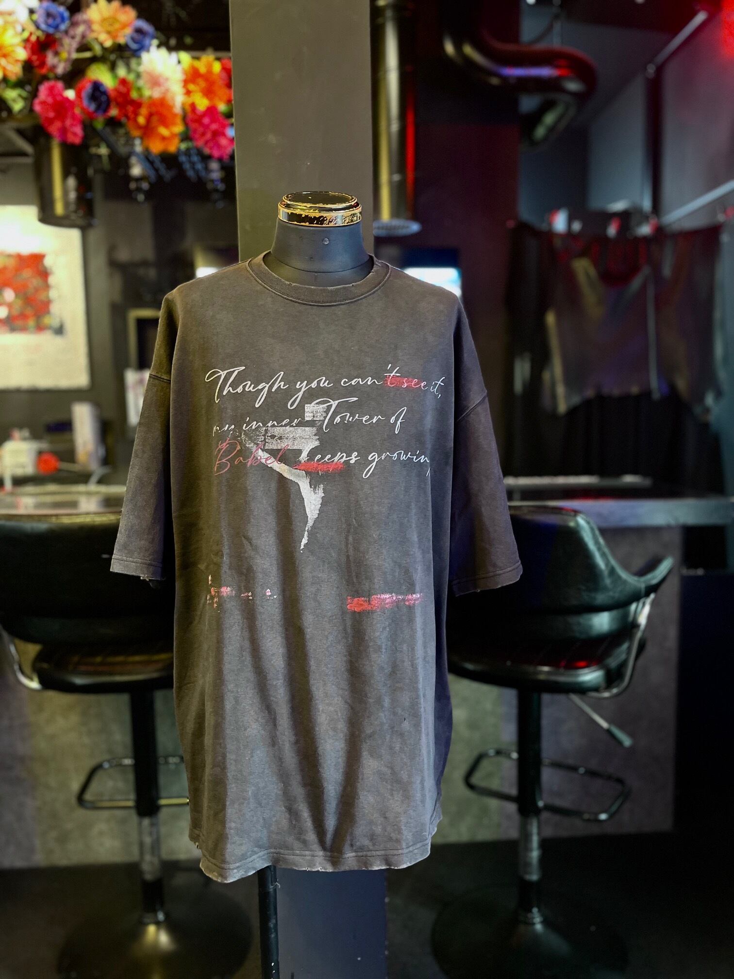 ジーザスがモチーフのグラフィックに、「あなたには見えなくても、私の中のBABELの塔は作り続けている。」というメッセージがプリントされている。
