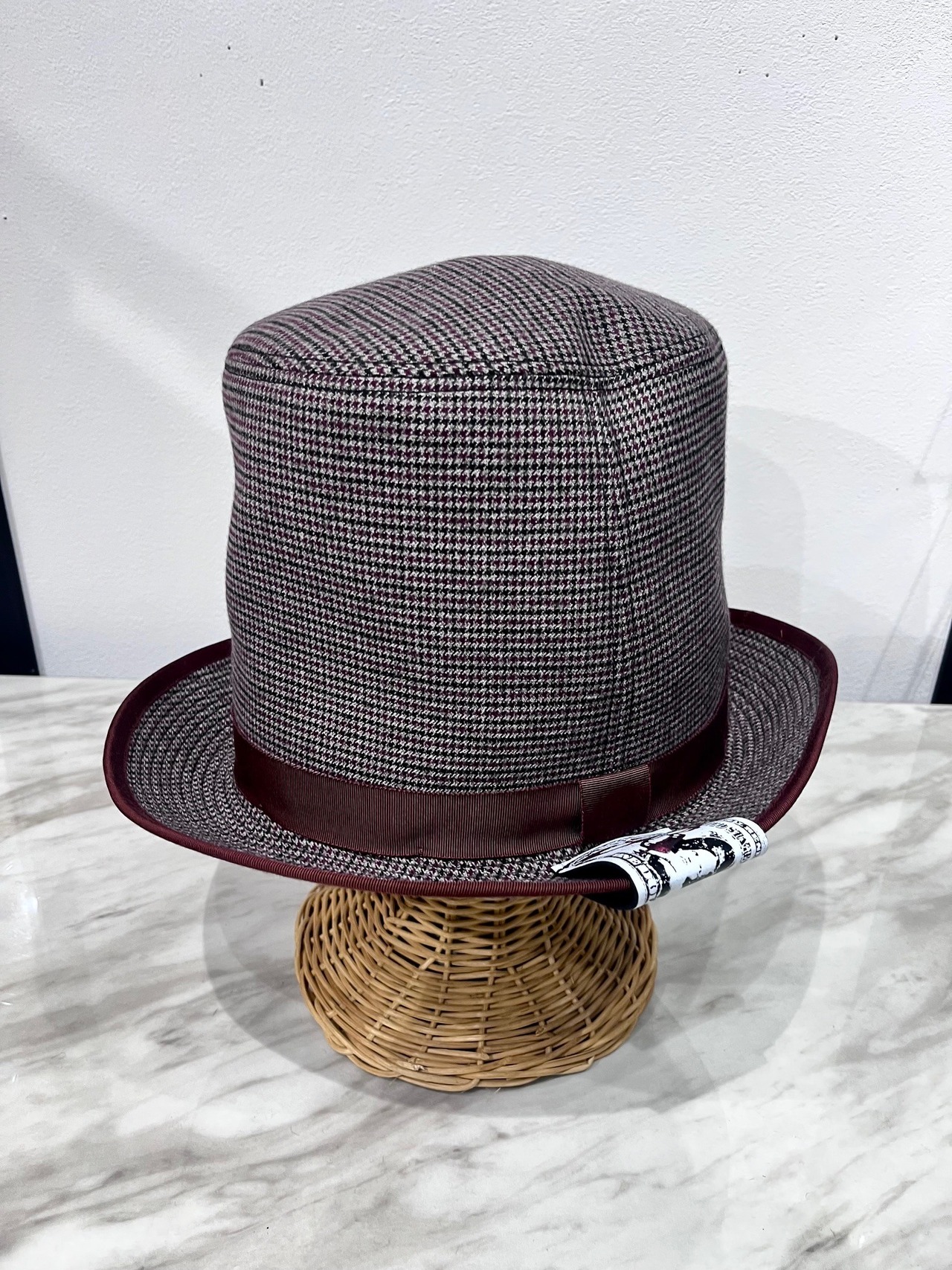 HEADS×BABELコラボレーション チェックシルクハット ワインレッド